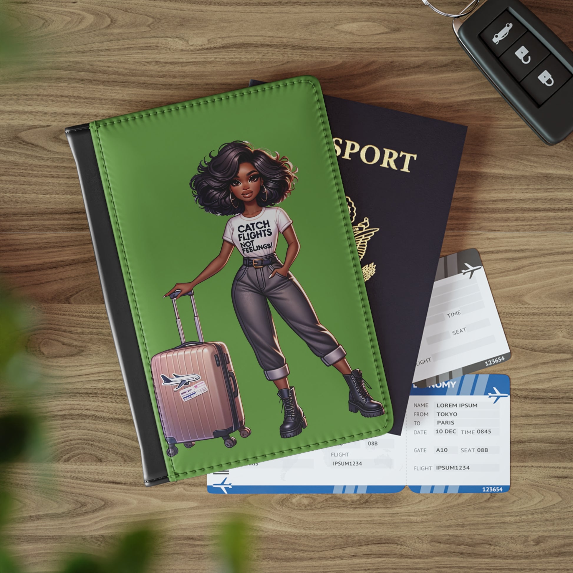 Embark on your next adventure with the Catch Flights Passport Cover. Crafted from elegant PU faux leather, this passport cover is a chic and practical choice for the discerning traveler. The mantra "Catch Flights NOT Feelings" adorns the front, encapsulating the spirit of exploration and adventure. With its convenient inner pockets, this cover not only safeguards your passport but also keeps essential travel documents organized and accessible. It's the perfect blend of style and function for globetrotters who live by the thrill of travel.