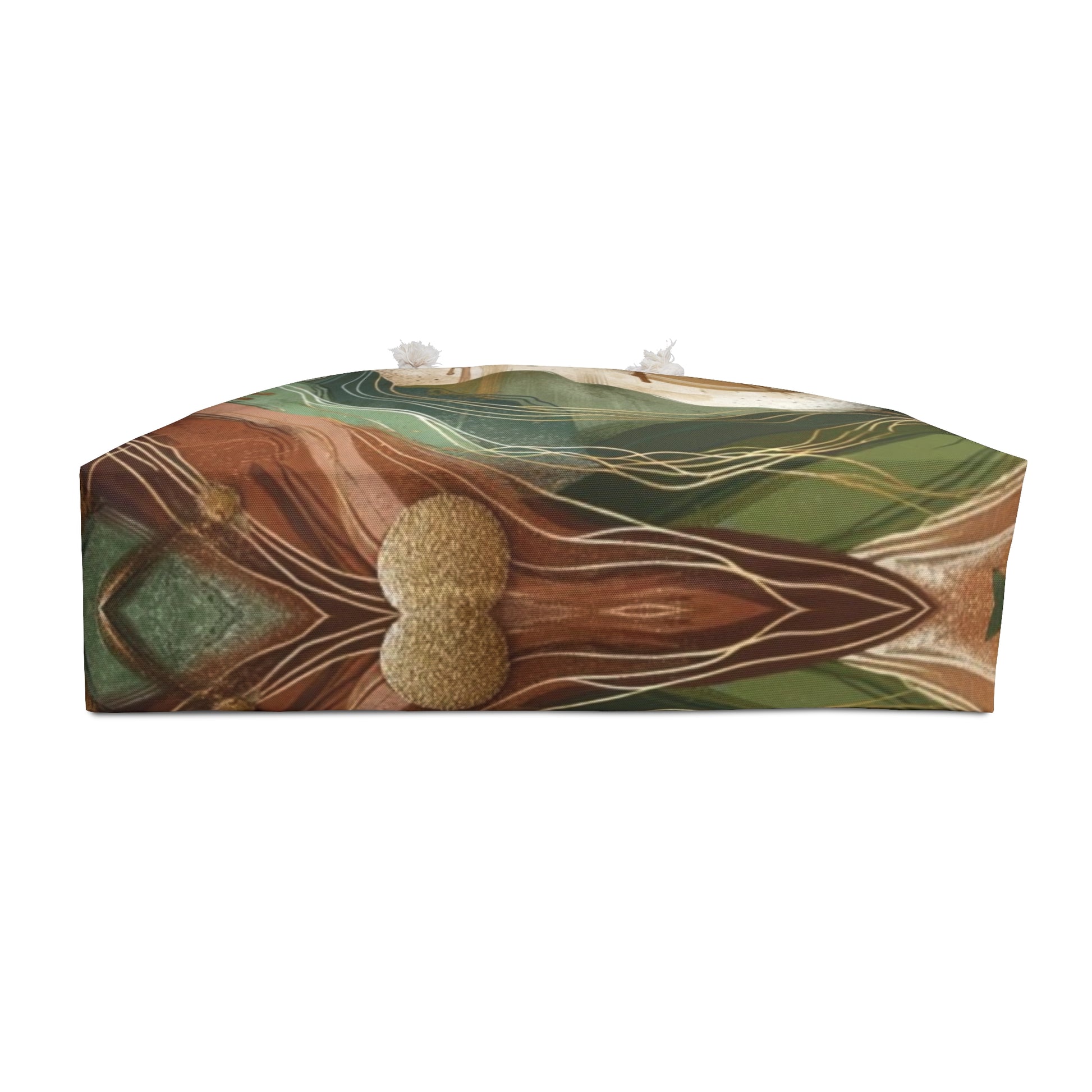 Elevate your travel style with the Mountain Peaks Weekender Bag. Designed for the modern traveler, this oversized tote features a captivating abstract mountain design that merges art with functionality. Its wide-mouthed structure and durable build are perfect for holding all your essentials for a weekend getaway. Whether you're headed to the beach or exploring the city, its thick rope handles ensure easy carrying. This bag is not just a travel accessory; it's a statement piece that celebrates the beauty of nature.