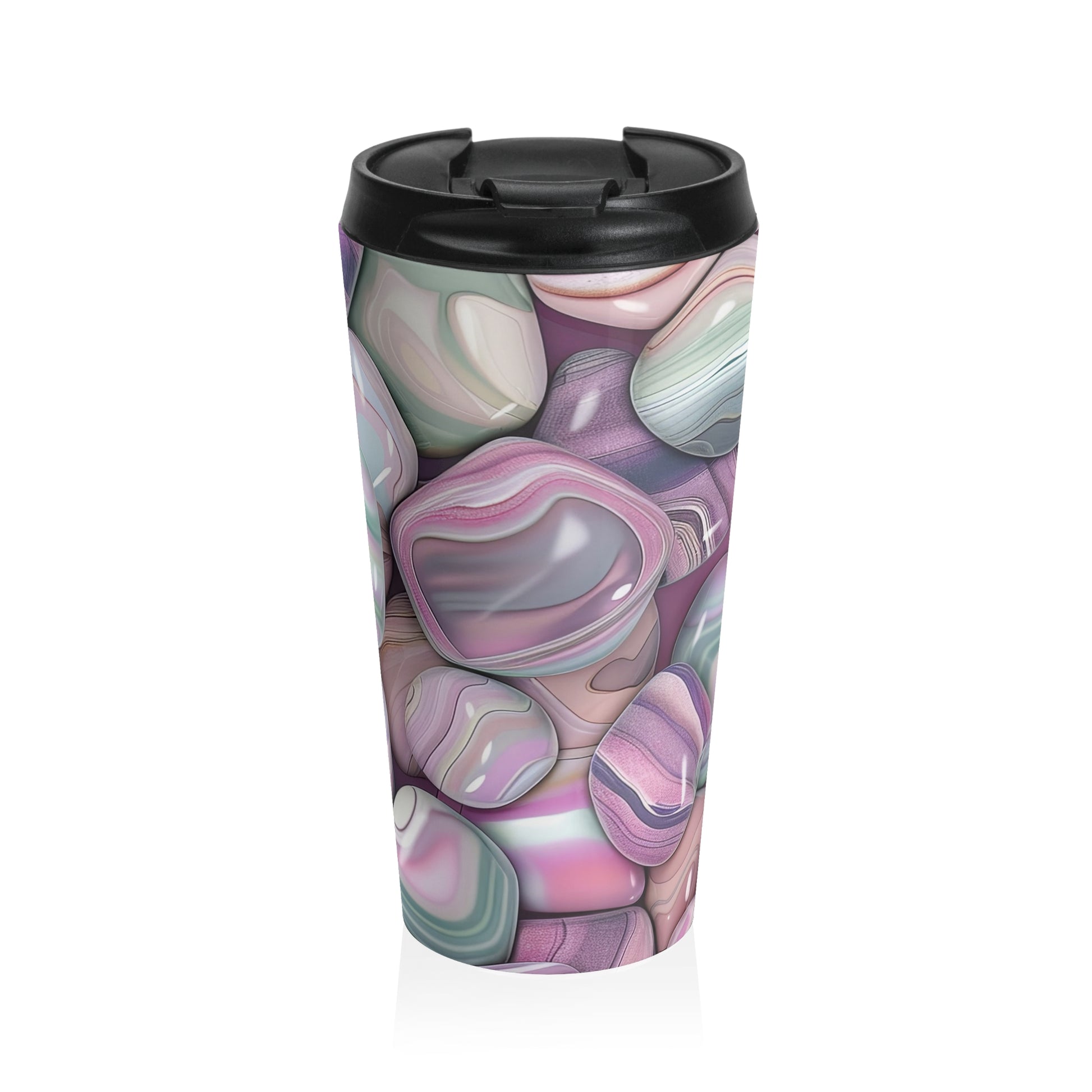 The Pebbles Stainless Steel Travel Mug is your perfect companion for life on the move. Whether you're catching flights or simply navigating the daily hustle, this mug ensures your beverage stays at the ideal temperature for hours. Crafted with high-quality stainless steel and sublime sublimation printing, it's a stylish, durable choice for coffee or tea lovers.Â