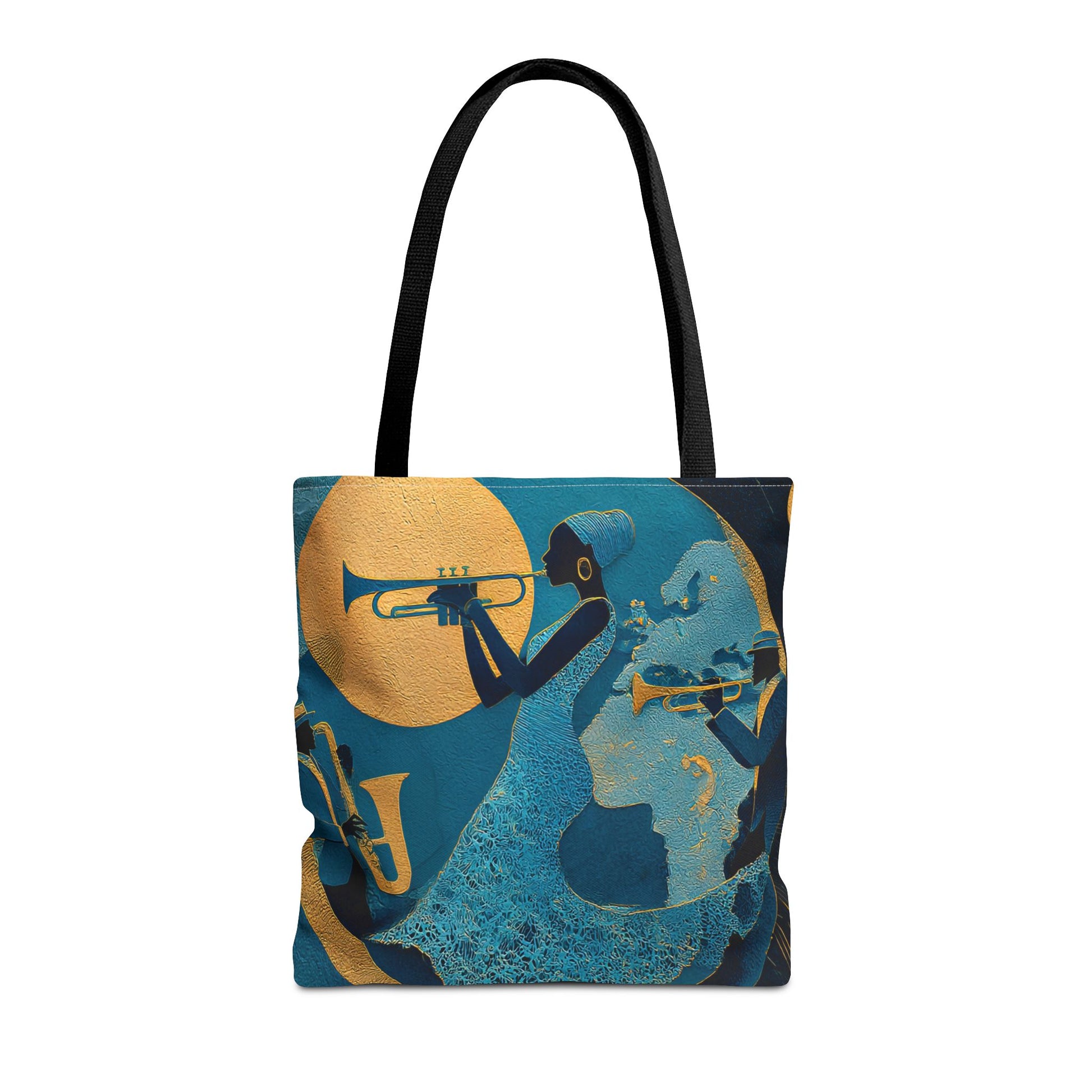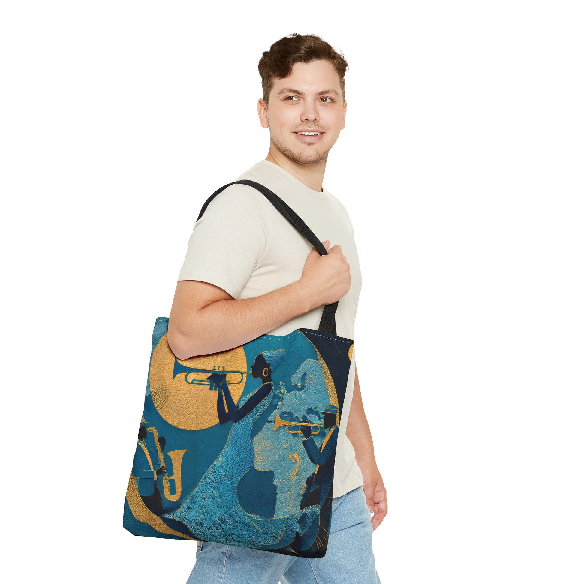 The perfect blend of style and functionality. Featuring a stunning abstract design of Da Blues in motion. This tote bag is more than just a carry-all; it's a statement piece that complements any outfit. Ideal for daily use, shopping, travel, and more, this tote bag is designed to meet all your carrying needs with elegance and grace.