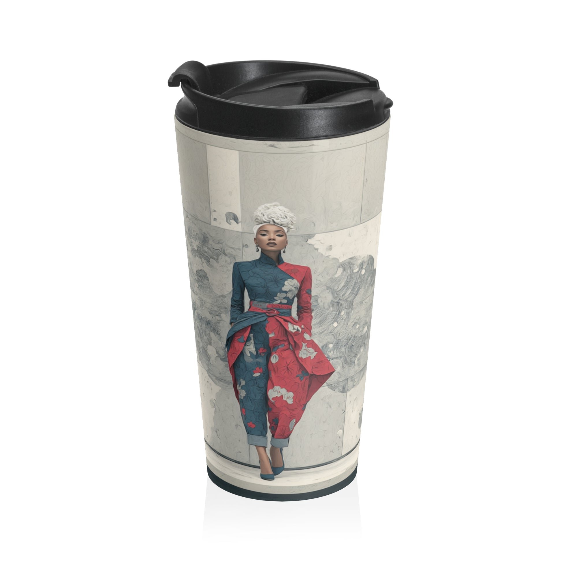 This 15oz Stainless Steel Travel Mug is your perfect companion for life on the move. Whether you're catching flights or simply navigating the daily hustle, this mug ensures your beverage stays at the ideal temperature for hours. Crafted with high-quality stainless steel and featuring sublime sublimation printing, it's a stylish, durable choice for coffee or tea lovers. With its sleek design and stunning AI-generated art, it's a must-have for anyone who loves to infuse beauty, confidence, and authenticity into every aspect of their life.
