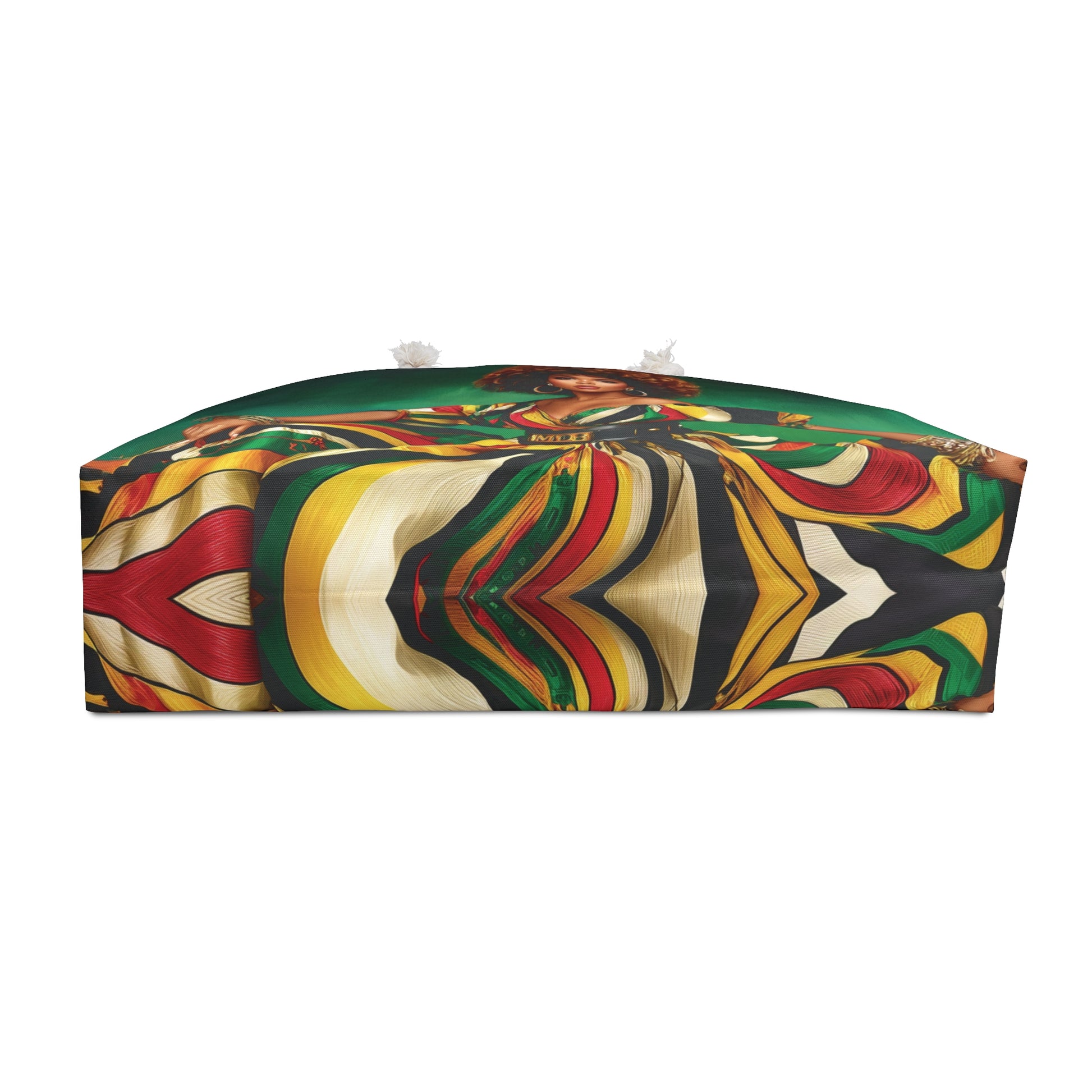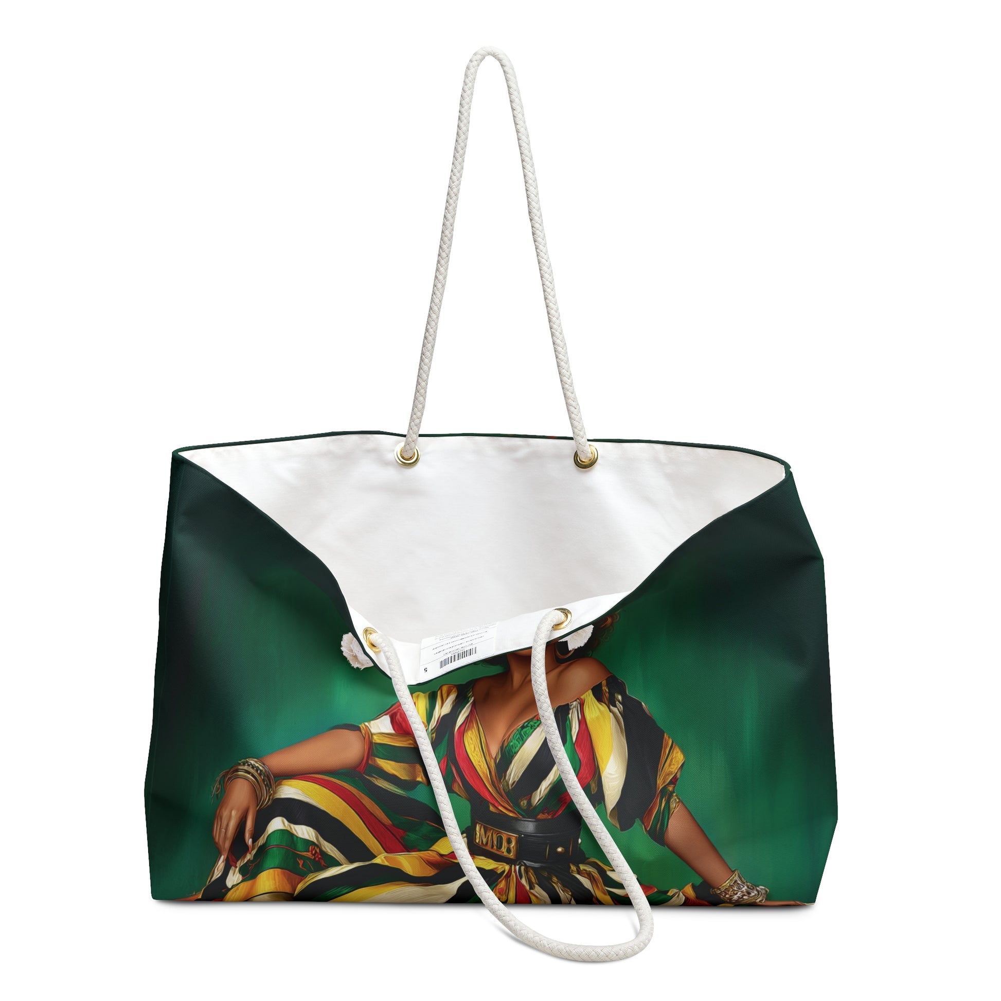 Elevate your travel style with the For The Culture Weekender Bag. Designed for the modern traveler, this oversized tote features a captivating design of a melanated beauty that merges art with functionality. Its wide-mouthed structure and durable build are perfect for holding all your essentials for a weekend getaway. Whether you're headed to the beach or exploring the city, its thick rope handles ensure easy carrying. This bag is not just a travel accessory; it's a statement piece that celebrates beauty and culture.