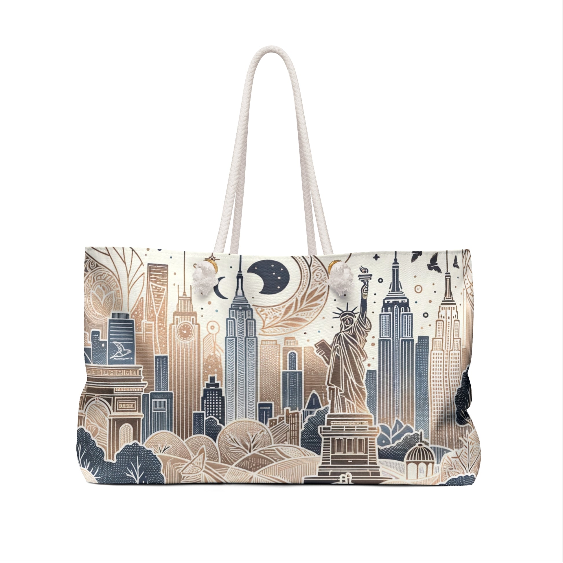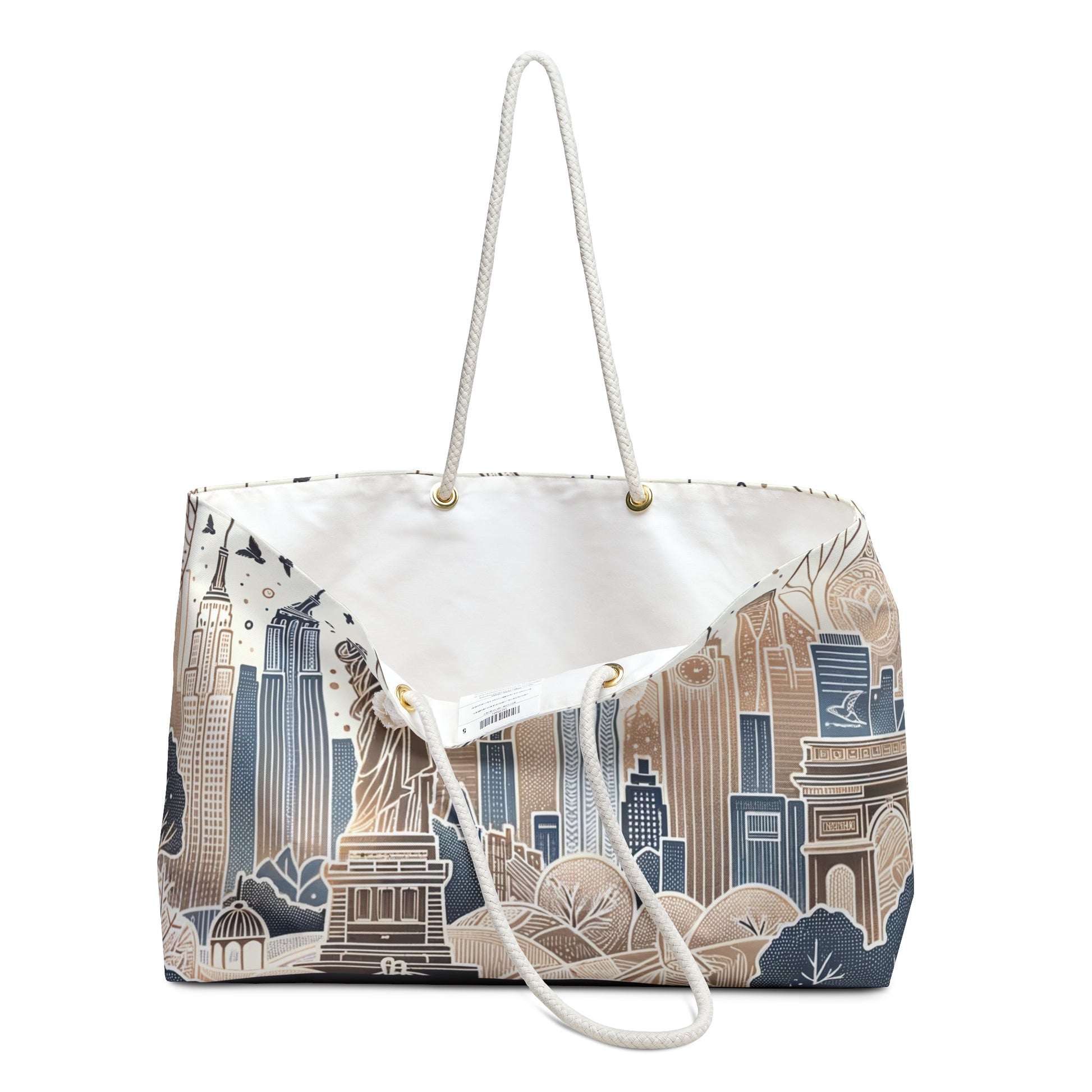 The Abstract NYC Weekender Bag is a part of our Signature Travel Collection. It's an ideal companion for those quick city breaks or leisurely beach retreats. This oversized tote encapsulates the vibrant energy of New York City through its abstract design. Perfect for carrying all your essentials, the bag's wide-mouthed opening and robust construction ensure durability and ease of access. Its thick rope handles add a touch of nautical charm, making it as fashionable as it is functional. Whether you’re an urban adventurer or a beach enthusiast, this bag is a stylish testament to your love for travel.