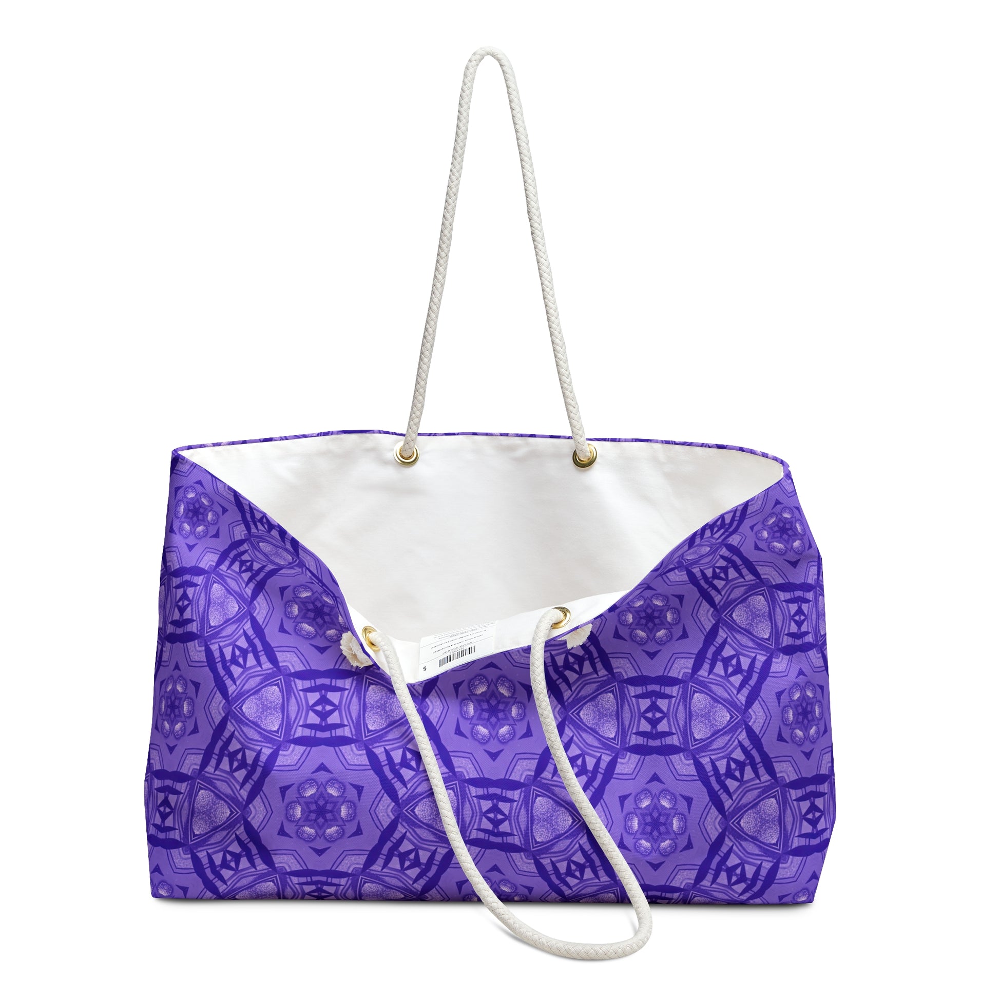Elevate your travel style with the Purple Harmony Weekender Bag. Designed for the modern traveler, this large, oversized tote features a striking abstract kaleidoscope pattern in vibrant purple hues, making it both eye-catching and stylish. This weekender bag combines abstract design with practical functionality, perfect for holding all your essentials for a weekend getaway.