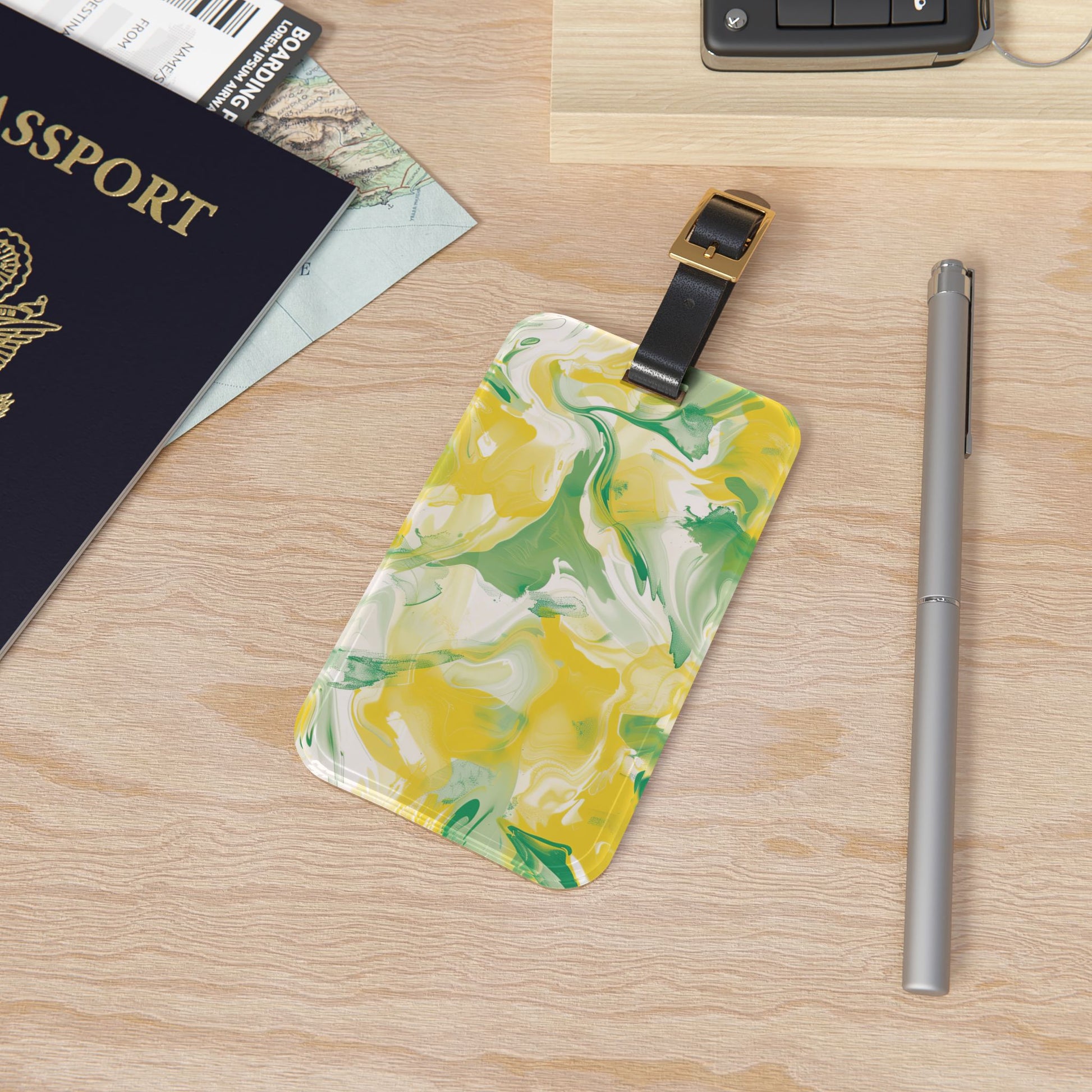 This luggage tag says it all... Spring is in the air! Made from durable materials, it's perfect for identifying your luggage whether you're heading to the beach or exploring the town. This tag is functional and a stylish statement piece made from sturdy acrylic. The tag is perfect for those who travel with passion and purpose. Lightweight and durable, it includes a leather strap for secure attachment and a business card insert for easy identification. Whether you're jet-setting across the globe or embarking on a weekend getaway, this luggage tag adds a touch of personality to your journey.