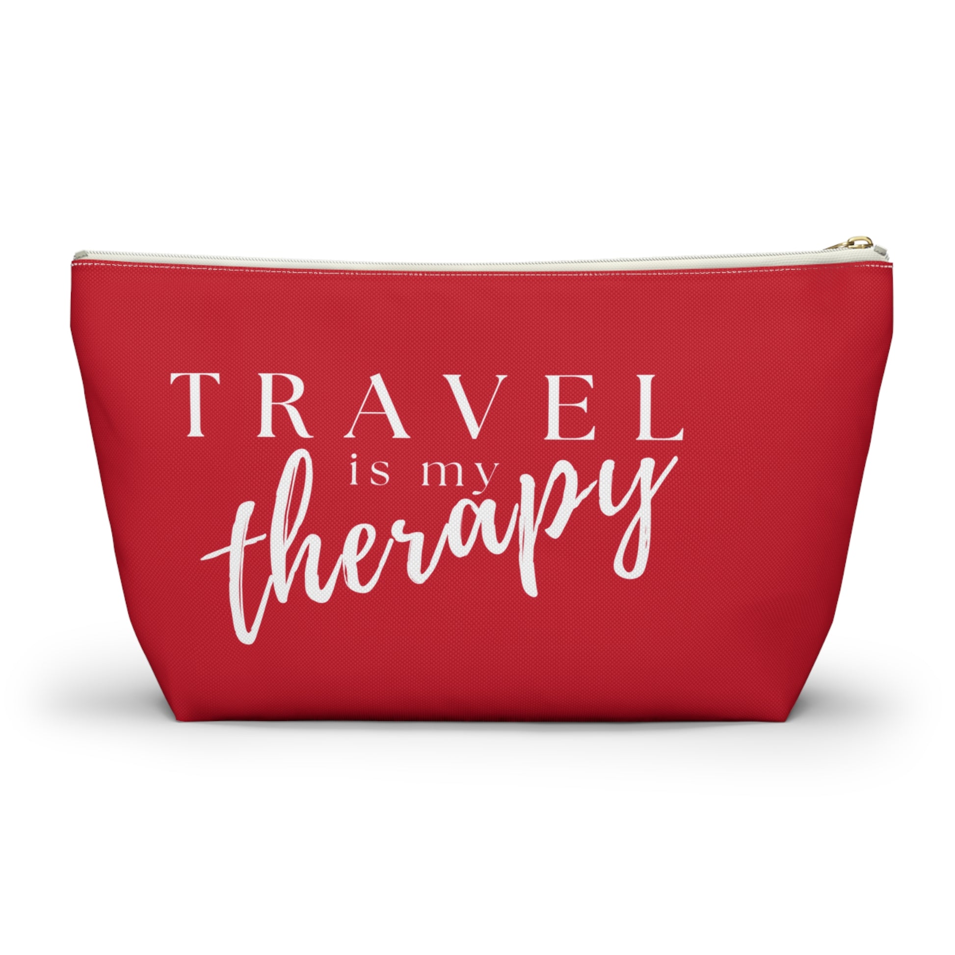 Travel Is My Therapy (red) Accessory Pouch w T-bottom